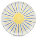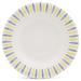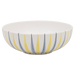 Fayence weiß gelbe Bänder und blaue Striche Glasur glänzend