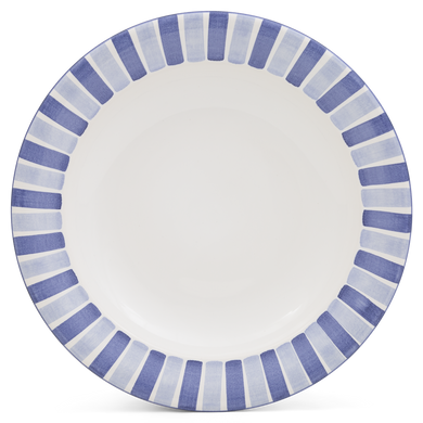Fayence weiß - blaue und hellblaue Streifen - Glasur glänzend