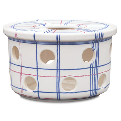 Das erste Stövchen aus Keramik nahm Hedwig Bollhagen vor 1958 in die Produktpalette der Marwitzer Keramikmanufaktur auf. Die ansprechenden Dekore auf den keramischen Feuerstellen sind der Blickfang jeder Tee-Zeremonie. Von blau (117) oder rot geblümt (118) über weiß-blaue (137) oder gelb-blaue Bänder (138) bis zu den legendären Sgraffito-Ritz-Dekoren Kreuzpunkt (600), senkrechter Balken (612) oder Fischernetz (661): Der umfangreiche Muster-Mix macht die Stövchen von Hedwig Bollhagen so besonders.