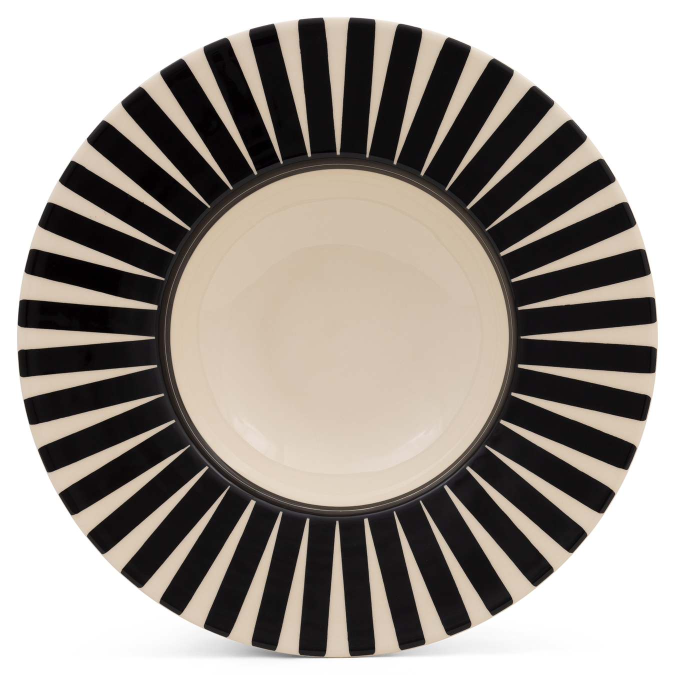 Die praktischen und formschönen Essteller finden sich auf dem üppig gedeckten Frühstückstisch ebenso wieder wie beim Kaffeekränzchen an der Gartentafel der Finca. Ob Caesar auf dem Salatteller, Borschtsch auf dem Suppenteller, Spaghetti auf dem Nudelteller oder Apfelstrudel auf dem Kuchenteller, Hedwig Bollhagens Keramikteller bringen Abwechslung und gute Laune auf den Tisch. Die Serienteller nahm Hedwig Bollhagen direkt nach der Gründung 1934 ins Portfolio auf. In der Keramik-Manufaktur im brandenburgischen Marwitz schuf die Keramikkünstlerin bis zu ihrem Tode 2001 neben ihren Servicen, Dosen und „Töppen“ auch zahlreiche Teller. Von Desserttellern und Fonduetellern über Frühstücks- und Kinderteller bis hin zu Pastatellern, Pizzatellern und Suppentellern - die Unikate werden bis heute nach Bollhagens Entwürfen und Vorgaben von Hand gefertigt und bemalt. Bis zu 60 mal nehmen die teils noch von Bollhagen persönlich ausgebildeten Keramiker die Teller in die Hand, bevor sie in den Verkauf gehen können.