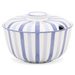 Fayence weiß - blaue und hellblaue Streifen - Glasur glänzend