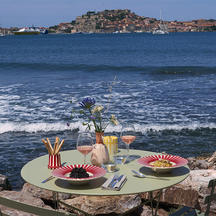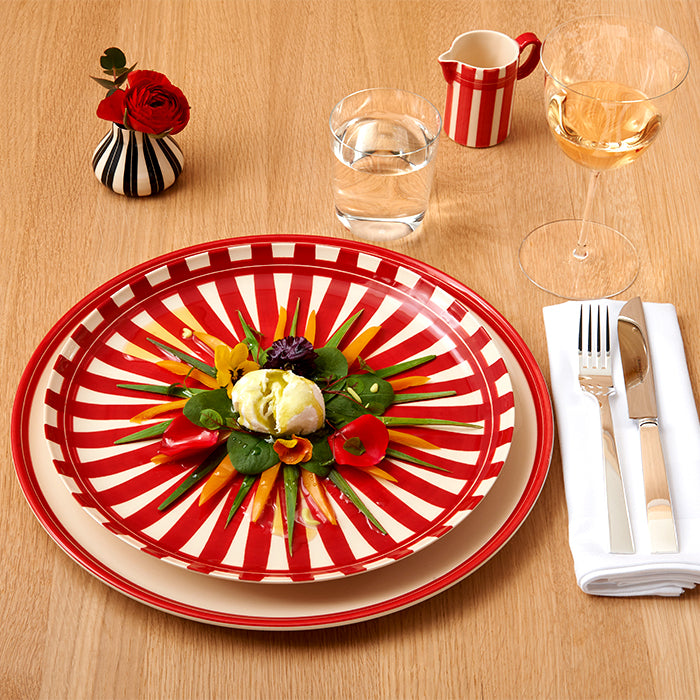 Zum 100-jährigen Bauhaus-Jubiläum haben wir das Dekor in kräftigen Farben wie Rot, Blau, Gelb und Orange neu interpretiert – kraftvoll wie ein Pokalspiel.