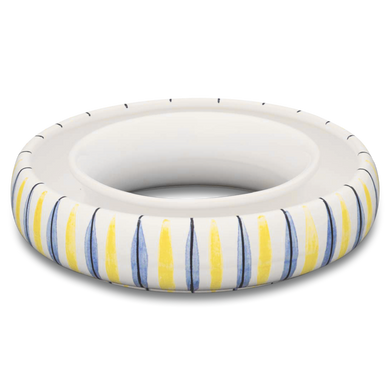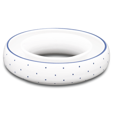 Der Blumenring mit der Formnummer “735A” von Hedwig Bollhagen ist die kleinste Schwester vom mittleren (735B) und großen (735C) Blumenring. Charakteristisch ist der ringförmige, nach oben geöffnete und mit Wasser befüllbare Korpus aus robuster Keramik. Bei einer Höhe von dreieinhalb Zentimetern und einem Durchmesser von 16 Zentimetern lässt sich der Blumenring vor allem mit kleineren Blumen und Blüten bestücken. Ob Gänseblümchen, Studentenblumen und Stiefmütterchen im Sommer oder Tannengrün im Winter, gefüllt mit frischen Blüten und Zweigen zieht der Blumenring zu jeder Jahreszeit alle Blicke auf sich. Als origineller Tischschmuck wertet der kleine Blumenring 735A von Hedwig Bollhagen jede Tafel auf.