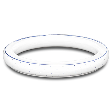 Der Blumenring mit der Formnummer “735C” von Hedwig Bollhagen ist die große Schwester vom kleinen (735A) und mittleren (735B) Blumenring. Charakteristisch ist der ringförmige, nach oben geöffnete und mit Wasser befüllbare Korpus aus robuster Keramik. Mit einer Höhe von fünf Zentimetern und einem Durchmesser von 34 Zentimetern hat der Blumenring die Größe der absolute Mittelpunkt jeder feinen Tafel, an die sich die Familie setzt zu sein. Ob Frühblüher oder bunte Sommerblumen, bestückt mit einem farbenfrohen Blütenmeer wertet der Blumenring jedes Ambiente auf. Auch in der kalten Jahreszeit, dekoriert mit Tannengrün, Zapfen oder Trockenblumen, zieht der Blumenring alle Blicke auf sich. Er grünt nicht nur zur Sommerszeit, nein auch im Winter wenn es schneit.