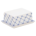 Fayence weiß blaues Rautennetz Glasur glänzend
