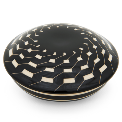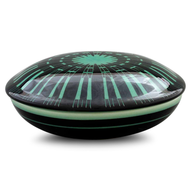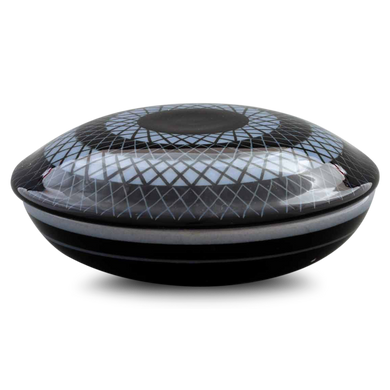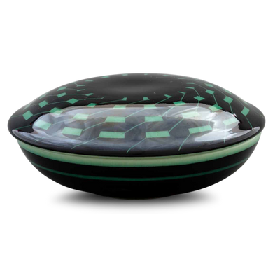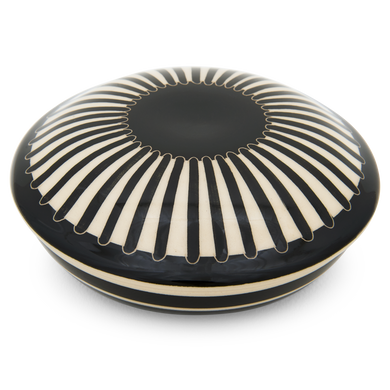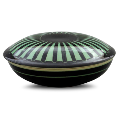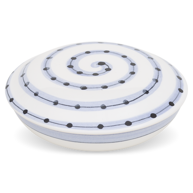 Die Dose von Hedwig Bollhagen mit der Formnummer „503A“ haucht dem Ambiente Leben ein. Charakteristisch für das zweiteilige Set sind das schüsselförmige Gefäß und der nach oben abgerundete Deckel. Auf einen Henkel oder Griffe hat die Keramikkünstlerin verzichtet. Bei einem Durchmesser von zwölf Zentimetern und einer Höhe von fünf Zentimeter ist die Dose mehr als doppelt so breit wie hoch. Und mit einem Fassungsvermögen von 0,1 Litern gehört die 240 Gramm leichte Dose wohl eher zu den kleinen, aber nicht minder feinen Dosen im Sortiment. Ob Ohrring, Brosche oder Manschettenknopf, für die kleinen Schmuckstücke des Alltags ist die keramische Dose der perfekte Aufbewahrungsort.