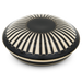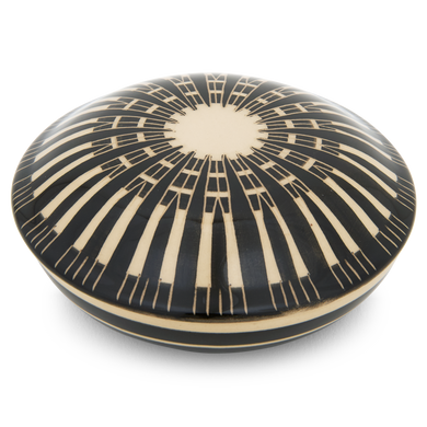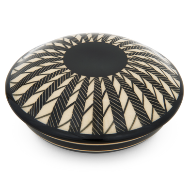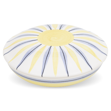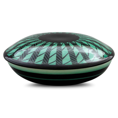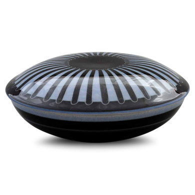 Die Dose von Hedwig Bollhagen mit der Formnummer „503A“ haucht dem Ambiente Leben ein. Charakteristisch für das zweiteilige Set sind das schüsselförmige Gefäß und der nach oben abgerundete Deckel. Auf einen Henkel oder Griffe hat die Keramikkünstlerin verzichtet. Bei einem Durchmesser von zwölf Zentimetern und einer Höhe von fünf Zentimeter ist die Dose mehr als doppelt so breit wie hoch. Und mit einem Fassungsvermögen von 0,1 Litern gehört die 240 Gramm leichte Dose wohl eher zu den kleinen, aber nicht minder feinen Dosen im Sortiment. Ob Ohrring, Brosche oder Manschettenknopf, für die kleinen Schmuckstücke des Alltags ist die keramische Dose der perfekte Aufbewahrungsort.
