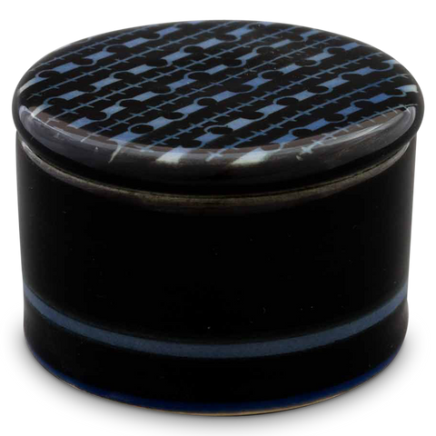 Die Dose von Hedwig Bollhagen mit der Formnummer „863“ muss man wohl eher als Döschen bezeichnen. Charakteristisch für das zweiteilige Set aus Gefäß und Verschluss sind der gerade zylindrische Korpus und der flache, runde Deckel. Auf einen Henkel oder Griffe hat die Künstlerin bei der keramischen Dose verzichtet. Bei einem Durchmesser von fünf Zentimetern und einer Höhe von drei Zentimeter gehört dieses nur 70 Gramm leichte Döschen zu den kleinen und mit Sicherheit auch ganz besonders feinen im Sortiment von Hedwig Bollhagen. Ob Tabletten, Pillen oder Globuli, diese praktische Dose ist der perfekte Aufbewahrungsort für die alltägliche Medizin.