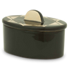 Die Dose von Hedwig Bollhagen mit der Formnummer „876“ besticht durch ihren zeitlos ansprechenden Designcharakter mit charmant-nostalgischer Note. Typisch für das zweiteilige Set, bestehend aus Keramikgefäß und Verschluss, sind der oval fließende, geradlinig wachsende Korpus und der flache Deckel mit harmonisch geschwungenem, halbkeisförmigem Griff. Mit einer Höhe von 10 Zentimetern und einer Länge von 13 Zentimetern bietet sich die formschöne Keramikdose ideal zum Aufbewahren diverser Köstlichkeiten und Schmuckschätze an. Die 100 ml fassende und nur 190 Gramm leichte Dose mit Griff 876 ist ein von Hand gemachtes Unikat, das stets geschmackvolle Akzente im Interieur setzt und mit hoher Funktionalität überzeugt.