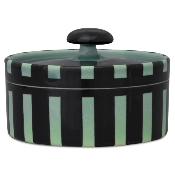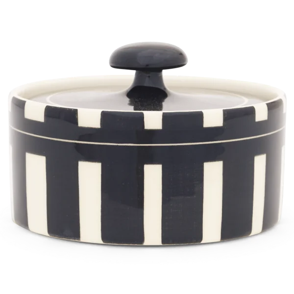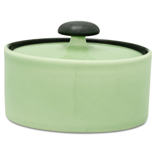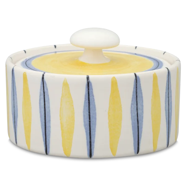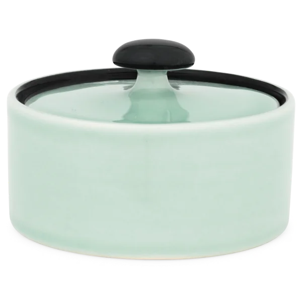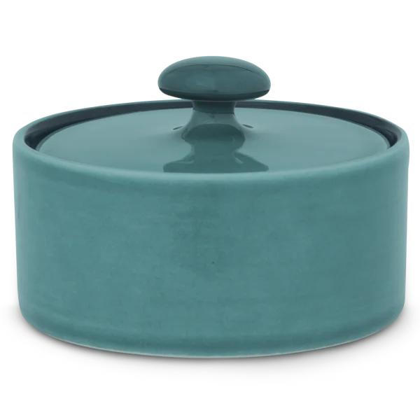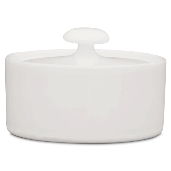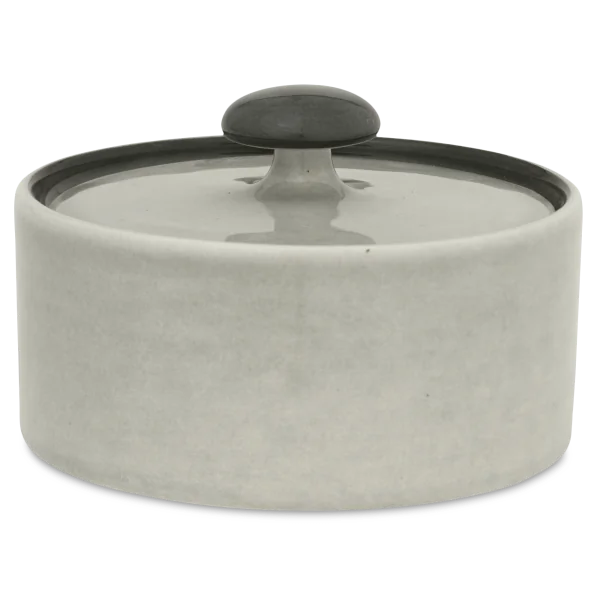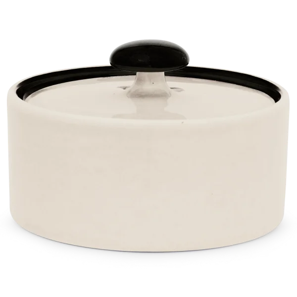 Die Zuckerdose von Hedwig Bollhagen mit der Formnummer „558“ besticht durch ihre zeitlose, zugleich aber funktionale Form. Damit folgt das zweiteilige Set aus Behälter und Deckel dem Credo von Hedwig Bollhagen: Schön ist, was funktioniert. Charakteristisch sind der geradlinig verlaufende, zylinderförmige Korpus und der pilzförmige, anmontierte Knauf auf dem flachen Deckel. Auf Griffe am Kandis-Behälter hat die Künstlerin verzichtet. Bei einem Durchmesser von acht Zentimetern ist das sechs Zentimeter niedrige Gefäß fast so hoch wie breit. Mit einem Fassungsvermögen von 0,2 Litern gehört die Zuckerdose dabei allerdings zu den etwas kleineren im Sortiment von Hedwig Bollhagen.