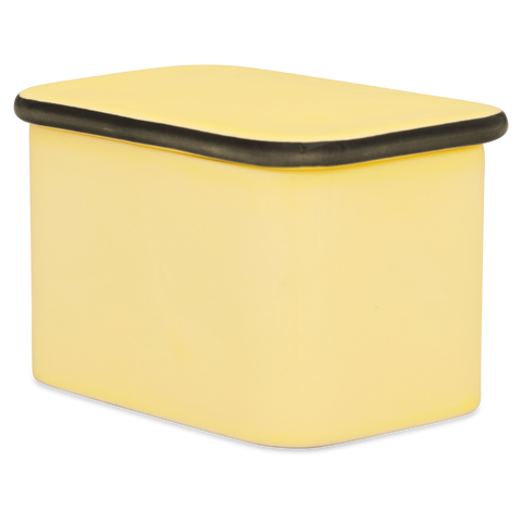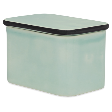 Die Dose von Hedwig Bollhagen mit der Formnummer „873“ bietet allerhand Stauraum für die auserlesenen Schätze des Alltags. Charakteristisch für das zweiteilige Set aus Gefäß und Verschluss sind der rechteckige Korpus, der ebenso rechteckige, flache Deckel und die leicht abgerundeten Ecken. Zehn Zentimeter lang, sieben Zentimeter breit und sechseinhalb Zentimeter hoch – mit ihren Maßen zählt die 200 Gramm leichte Dose eher zu den kleinen, aber nicht minder feinen in der Bollhagen-Kollektion. Ob edle Perlenkette, nobles Amulett oder elegante Brosche, diese keramische Schatulle mit ihrem Fassungsvermögen von 0,2 Litern bietet allerhand Platz für Geschmeide und Schmuck aller Art.