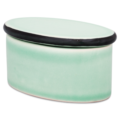 Die Dose von Hedwig Bollhagen mit der Formnummer „490“ geht eine gelungene Synthese von Kunst und Handwerk ein. Schön ist, was funktioniert, so lautete das Motto. Charakteristisch sind der zylindrische Fuß, der konische, unten abgerundete Korpus und der flache, runde Deckel. Auf einen Henkel oder Griffe hat die Keramikerin verzichtet. Mit einem Durchmesser von zwölf Zentimetern und einer Höhe von sieben Zentimeter ist diese Dose mehr breit als hoch. Bei einem Fassungsvermögen von 0,3 Litern ist die 360 Gramm leichte Dose weder zu groß noch zu klein. Eins ist sicher, ob Kekse, Briefmarken oder Schmuck, diese Dose ist vielseitig einsetzbar.