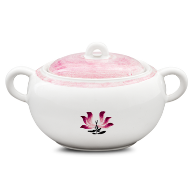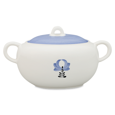 Die Zuckerdose von Hedwig Bollhagen mit der Formnummer „501“ sorgt für die Extraportion Gemütlichkeit auf der Kaffeetafel. Das zweiteilige Set aus Behälter und Deckel verströmt mehr als einen Hauch von Nostalgie. Charakteristisch ist der kugelförmig-gebauchte, nach oben und unten abgerundete Korpus. Der halbrunde Griff auf dem leicht nach oben gewölbten Deckel und die beiden sich diametral gegenüberliegenden, anmontierten, halbrunden Griffe am Gefäß runden das Design harmonisch ab. Bei einem Durchmesser von 15 Zentimetern ist das acht Zentimeter niedrige Gefäß zwar nur etwa halb so hoch wie breit. Mit einem Fassungsvermögen von einem 0,25 Litern gehört der Kandis-Behälter aber schon zu den etwas größeren im Sortiment von Hedwig Bollhagen.