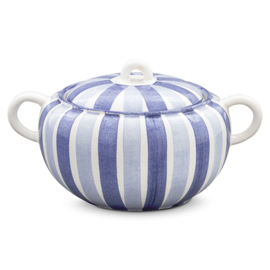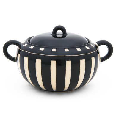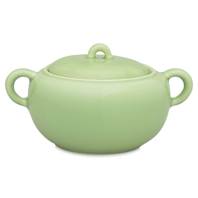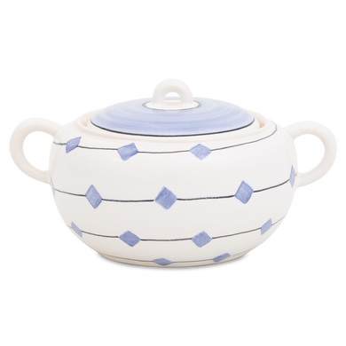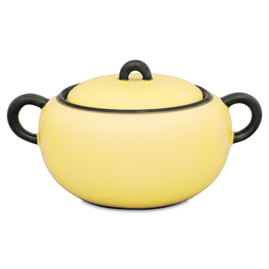 Die Zuckerdose von Hedwig Bollhagen mit der Formnummer „501“ sorgt für die Extraportion Gemütlichkeit auf der Kaffeetafel. Das zweiteilige Set aus Behälter und Deckel verströmt mehr als einen Hauch von Nostalgie. Charakteristisch ist der kugelförmig-gebauchte, nach oben und unten abgerundete Korpus. Der halbrunde Griff auf dem leicht nach oben gewölbten Deckel und die beiden sich diametral gegenüberliegenden, anmontierten, halbrunden Griffe am Gefäß runden das Design harmonisch ab. Bei einem Durchmesser von 15 Zentimetern ist das acht Zentimeter niedrige Gefäß zwar nur etwa halb so hoch wie breit. Mit einem Fassungsvermögen von einem 0,25 Litern gehört der Kandis-Behälter aber schon zu den etwas größeren im Sortiment von Hedwig Bollhagen.