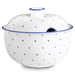 Fayence weiß mit blauen Punkten und Abschluß Glasur glänzend