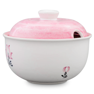 Die Marmeladendose von Hedwig Bollhagen mit der Formnummer „542“ präsentiert Großmutters Chutney beim Brunch zeitlos und stilsicher. Das zweiteilige Set aus Gefäß und Deckel ist bei einem Durchmesser von zehn Zentimetern und einer Höhe von sieben Zentimetern fast so hoch wie breit. Und mit einem Fassungsvermögen von 0,2 Litern ist die 250 Gramm leichte Marmeladendose weder zu klein noch zu groß. Charakteristisch ist der bauchig-kugelförmige Korpus vom Gefäß. Ein rundlich konvexer Deckel mit einem kegelförmigen Griff verschließt die nach oben geöffnete Dose. Dank der etwa einen Zentimeter kleinen, halbrunden Öffnung am Deckelrand hat auch der Marmeladenlöffel sein sicheres Plätzchen.