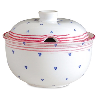 Die Marmeladendose von Hedwig Bollhagen mit der Formnummer „542“ präsentiert Großmutters Chutney beim Brunch zeitlos und stilsicher. Das zweiteilige Set aus Gefäß und Deckel ist bei einem Durchmesser von zehn Zentimetern und einer Höhe von sieben Zentimetern fast so hoch wie breit. Und mit einem Fassungsvermögen von 0,2 Litern ist die 250 Gramm leichte Marmeladendose weder zu klein noch zu groß. Charakteristisch ist der bauchig-kugelförmige Korpus vom Gefäß. Ein rundlich konvexer Deckel mit einem kegelförmigen Griff verschließt die nach oben geöffnete Dose. Dank der etwa einen Zentimeter kleinen, halbrunden Öffnung am Deckelrand hat auch der Marmeladenlöffel sein sicheres Plätzchen.