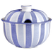 Fayence weiß - blaue und hellblaue Streifen - Glasur glänzend