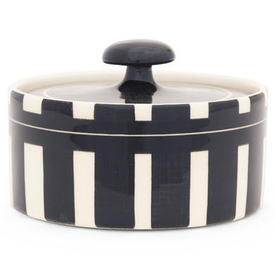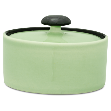 Die Zuckerdose von Hedwig Bollhagen mit der Formnummer „558“ besticht durch ihre zeitlose, zugleich aber funktionale Form. Damit folgt das zweiteilige Set aus Behälter und Deckel dem Credo von Hedwig Bollhagen: Schön ist, was funktioniert. Charakteristisch sind der geradlinig verlaufende, zylinderförmige Korpus und der pilzförmige, anmontierte Knauf auf dem flachen Deckel. Auf Griffe am Kandis-Behälter hat die Künstlerin verzichtet. Bei einem Durchmesser von acht Zentimetern ist das sechs Zentimeter niedrige Gefäß fast so hoch wie breit. Mit einem Fassungsvermögen von 0,2 Litern gehört die Zuckerdose dabei allerdings zu den etwas kleineren im Sortiment von Hedwig Bollhagen.
