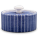 Fayence weiß mit engen blauen STreifen Glasur glänzend