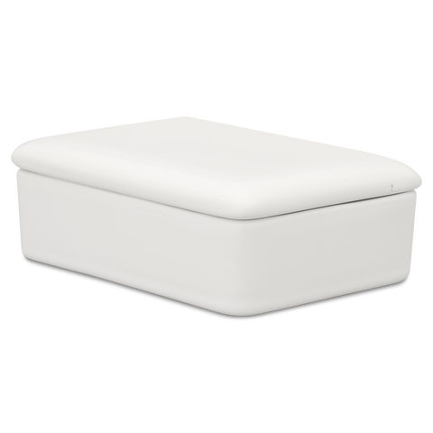 Der Zigarettenkasten von Hedwig Bollhagen mit der Formnummer „861“ verströmt mehr als eine nostalgische Aura. Schon Großvater könnte in dieser keramischen Schatulle seinen Pfeifentabak oder die kubanischen Zigarren aufbewahrt haben. Charakteristisch für das zweiteilige Set aus Gefäß und Verschluss sind der rechteckige Korpus mit dem flachen Deckel. Zwölf Zentimeter lang, acht Zentimeter breit, fünf Zentimeter hoch – mit seinen Maßen ist der 210 Gramm leichte Zigarettenkasten weder zu groß noch zu klein. Ob Zigaretten, Schnupftabak oder E-Zigarre, in diesem keramischen Zigarettenkasten mit einem Fassungsvermögen von 0,1 Litern lassen sich Rauchutensilien aller Art stilvoll aufbewahren. Schön ist eben, was funktioniert. Der Zigarettenkasten 861 vereint beide Seiten.
