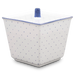 Fayence weiß mit blauen Punkten und Abschluß Glasur glänzend