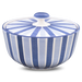 Fayence weiß - blaue und hellblaue Streifen - Glasur glänzend
