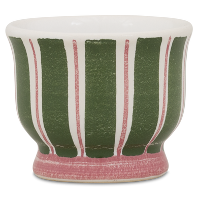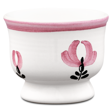 Im Eierbecher mit der Formnummer “521” von Hedwig Bollhagen sieht nicht nur Ihr Frühstücksei besser aus, sondern er lässt sich ebenso wunderbar als Salzgefäß dazu verwenden. Charakteristisch sind der konische Fuß und der bauchige, nach oben sich öffnende Korpus. Bei einer Höhe von vier Zentimetern und einer Breite von fünf Zentimetern ist der Eierbecher nicht nur fast so hoch wie breit, sondern gehört mit seinen winzigen Maßen wohl auch eher zu den Leichtgewichten in der keramischen Kollektion von Hedwig Bollhagen. Zwar klein, aber nicht minder fein, macht sich dieser Eierbecher auf Ihrem Frühstückstisch in jedem Fall positiv bemerkbar.