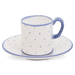 Fayence weiß mit blauen Punkten und Abschluß Glasur glänzend