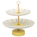 Die zweistöckige Etagere mit der Formnummer “611B” von Hedwig Bollhagen ist die kleine Schwester der dreistöckigen Version 611C und der vierstöckigen 611D und bringt klassischen Charme und Eleganz auf den Tisch. Formgebend für die Etageren ist das offene Gestell mit mehreren, nach unten zunehmend breiter werdenden tellerförmigen Ebenen. Der durchgehende, alle Etagen verbindende Messingstab mit dem kreisrunden Griff an der Spitze verleiht dem Design eine edle Note und sorgt für Stabilität. Mit einer Höhe von 24 cm und einem Durchmesser von 23 cm bietet der seit dem Barock so beliebte Gestell zwei Ebenen, die perfekt für das stilvolle Anrichten von Früchten, Gebäck oder kleinen Pralinen geeignet sind. Auf den mehrstöckigen Etageren von Hedwig Bollhagen lassen sich Obst und kleine Köstlichkeiten jeder Art stilvoll kredenzen. Runden Sie Ihre Tafel mit weiteren Tischaccessoires, Geschirr und Serviergeschirr ab und zaubern Sie auch Ihren Kindern mit dem liebevoll bemalten Kindergeschirr ein Lächeln ins Gesicht. Jedes Stück wird in den HB-Werkstätten für Keramik in Marwitz handgefertigt und vereint zeitlose Ästhetik mit traditionellem Handwerk seit 1934.