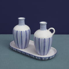 Fayence weiß - blaue und hellblaue Streifen - Glasur glänzend
