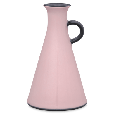 Der Flakon von Hedwig Bollhagen mit der Formnummer "539-O" überzeugt durch eine puristische Eleganz mit praktischen Raffinessen. Dank einer Höhe von 13 Zentimetern und einer Breite von 8 Zentimetern bietet sich das handgemachte Keramik-Gefäß mit abnehmbarem Naturkorken hervorragend als elegante Essig- und Ölflasche an, setzt aber auch für diverse andere Einsätze stets gelungene Akzente. Charakteristisch ist der pyramidenförmig nach oben wachsende Korpus mit einem Fassungsvermögen von 150 ml, der sich zu einem schmalen Hals mit oben ansetzendem, rundlichem Griff verengt. Der 160 Gramm leichte Flakon 539-O mit Griff und Naturkorken ist ein handgemachtes Unikat, das mit seinen harmonischen Konturen jedes Tischdekor auf augenfällige Weise veredelt.