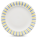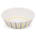 Fayence weiß gelbe Bänder und blaue Striche Glasur glänzend