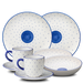 Fayence weiß mit blauen Punkten und Abschluß Glasur glänzend