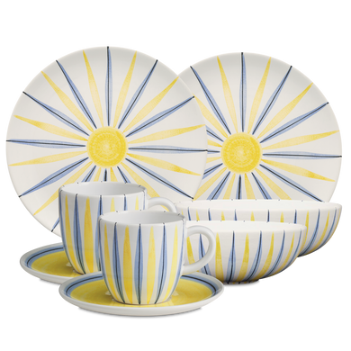 Mit dem 8-teiligen Frühstücksservice HB 573 von Hedwig Bollhagen für zwei Personen wird Ihr Morgenritual zu einem stilvollen Erlebnis. Beginnen Sie den Tag mit den beiden eleganten Brottellern (HB 502), deren zeitlose Bauhaus-Formgebung perfekt zum Anrichten von Brot, Brötchen oder kleinen Frühstücksleckereien ist. Mit einem Durchmesser von 20 cm sind sie vielseitig einsetzbar und vereinen Funktionalität mit nostalgischem Charme. Für Joghurt, Müsli oder Obst bieten die beiden Schüsseln (HB 503C) mit 18 cm Durchmesser und 0,3 Litern Fassungsvermögen ausreichend Platz – die ideale Größe für eine gesunde Frühstücksschale. Abgerundet wird das Set durch die beiden Cappuccinotassen (HB 573), die dank ihrer dicken Wände Heißgetränke wie Kaffee oder Cappuccino lange warm halten. Das schlichte, elegante Design der Tasse, kombiniert mit der passenden Untertasse, sorgt für einen harmonischen Start in den Tag. Handgefertigt in den Marwitzer Werkstätten, vereint dieses Set die unverwechselbare Qualität und den zeitlosen Stil, für den Hedwig Bollhagen seit 1934 steht.