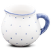 Fayence weiß mit blauen Punkten und Abschluß Glasur glänzend
