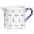Der Sahnegießer von Hedwig Bollhagen mit der Formnummer „484“ könnte fast die kleine Schwester des Kanadabecher sein – mal abgesehen von der Schneppe. Charakteristisch ist die gerade, nach oben zylindrische verlaufende Form des Korpus. Der anmontierte Ohrenhenkel und die diametral gegenüberliegende, nach außen aufgestellte, tropfsichere Tülle fügen sich harmonisch in das Design dieses Milchkännchens ein. Bei einem Durchmesser von vier Zentimetern ist das sechs Zentimeter hohe Gefäß eher höher als breiter. Und mit einem Fassungsvermögen von gerade einmal 0,1 Litern gehört der 100 Gramm leichte Sahnegießer zwar zu den kleinen, aber nicht minder feinen im keramischen Sortiment von Hedwig Bollhagen.