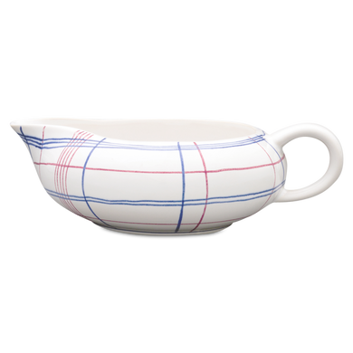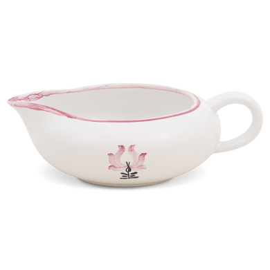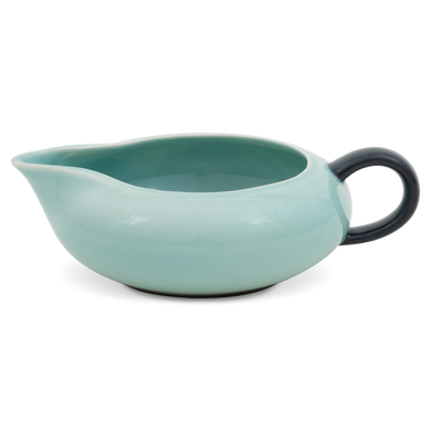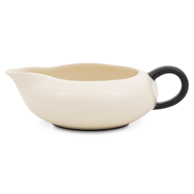 Der Sahnegießer von Hedwig Bollhagen mit der Formnummer „503“ erinnert wohl etwas an eine Lotusknospe oder sogar an die Wunderlampe von Aladin. Mitarbeiter der Marwitzer Keramik-Manufaktur tauften dieses Kännchen deswegen auch liebevoll „Dschinni“-Sahnegießer. Charakteristisch ist der ziemlich flache, bauchige Korpus. Bei einem Durchmesser von immerhin zwölf Zentimetern ist das nur viereinhalb Zentimeter niedrige Gefäß mehr breit als hoch. Mit einem Fassungsvermögen von 0,15 Litern ist das 190 Gramm leichte Gefäß weder zu klein noch zu groß. Der großzügige Henkel und die diametral gegenüberliegende, nach außen ausschwingenden Mündung mit der tropfsicheren Schneppe runden das Design harmonisch ab.