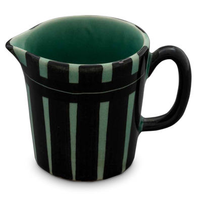 Der Sahnegießer von Hedwig Bollhagen mit der Formnummer „588“ bezaubert durch eine klassisch-schlichte Formgebung mit selbstbewusster Konturenzeichnung. Das traditionell von Hand gemachte Serviergefäß weist einen zylindrisch wachsenden Korpus mit fließendem Übergang zur leicht ausgestellten, tropfsicheren Mündung auf. Der rundliche, ohnrenförmige Henkel passt sich stimmig in das harmonisch angelegte Designkonzept des Sahnegießers ein. Bei einem Durchmesser von acht Zentimetern ist das sechs Zentimeter hohe Gefäß beinahe so hoch wie breit. Damit weist der Gießer 588 genau die richtigen Maße auf, um Saucen, Milch, Sahne und Co. ansprechend zu servieren, ohne viel Platz auf dem Tischgedeck einzunehmen.