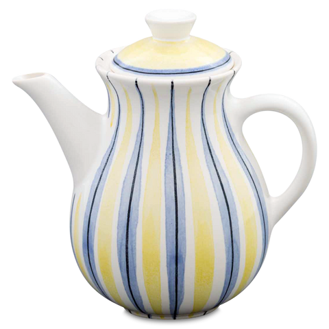 Die Kaffeekanne mit der Formnummer „1065A" von Hedwig Bollhagen garantiert höchsten Genuss diverser Heißgetränke mit einer Extraportion Nostalgie-Ästhetik. Die 15 Zentimeter hohe und 10 Zentimeter breite Kaffeekanne besitzt ideale Abmessungen, um zum Blickpunkt jeder Kaffeetafel zu avancieren, ohne viel Raum wegzunehmen. Die klassisch bauchige Gestalt der Kaffeekanne aus handgemachtem Keramik konturiert sich als harmonisch geschwungene Birnenform und weist ein Fassungsvermögen von 600 ml auf. Der rund geschwungene Kannenhenkel rückt in charakterstarken Kontrakt zum kantig geformten Knauf des Kannendeckels. Die nur 350 Gramm leichte Kaffeekanne der Serie HB-Ritz ist ein edles Serviergefäß, das zu jeder Gelegenheit passende Akzente setzt.