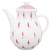 Die Kaffeekanne mit der Formnummer „1065B" von Hedwig Bollhagen garantiert höchsten Genuss diverser Heißgetränke und überzeugt mit einem klassischen Design, das den Geschmack aller Vintage-Fans verwöhnt. Die 18.5 Zentimeter hohe und 12.5 Zentimeter breite Kanne aus solidem Keramik weist ein großzügiges Fassungsvermögen von 1,25 Liter auf. Damit besitzt die nur 550 Gramm leichte Kaffeekanne das Potential, als praktisches wie formschönes Serviergefäß für Kaffeetafel und Co. zu fungieren. Die nostalgisch inspirierte, bauchige Gestalt der Kaffeekanne konturiert sich als harmonisch geschwungene Birnenform. Der rund geschwungene Kannenhenkel rückt in charakterstarken Kontrakt zum kantig geformten Knauf des Kannendeckels. Die traditionell von Hand gemachte und bemalte Kanne der Serie HB-Ritz setzt zu vielen Gelegenheiten immer die passenden Akzente.