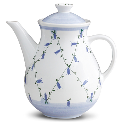 Die Kaffeekanne mit der Formnummer „1065B" von Hedwig Bollhagen garantiert höchsten Genuss diverser Heißgetränke und überzeugt mit einem klassischen Design, das den Geschmack aller Vintage-Fans verwöhnt. Die 18.5 Zentimeter hohe und 12.5 Zentimeter breite Kanne aus solidem Keramik weist ein großzügiges Fassungsvermögen von 1,25 Liter auf. Damit besitzt die nur 550 Gramm leichte Kaffeekanne das Potential, als praktisches wie formschönes Serviergefäß für Kaffeetafel und Co. zu fungieren. Die nostalgisch inspirierte, bauchige Gestalt der Kaffeekanne konturiert sich als harmonisch geschwungene Birnenform. Der rund geschwungene Kannenhenkel rückt in charakterstarken Kontrakt zum kantig geformten Knauf des Kannendeckels. Die traditionell von Hand gemachte und bemalte Kanne der Serie HB-Ritz setzt zu vielen Gelegenheiten immer die passenden Akzente.