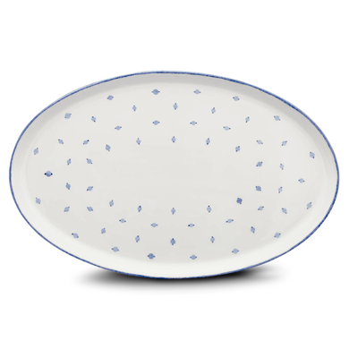 Fayence weiß dunkelblau auf hellblauen Punkten Glasur glänzend
