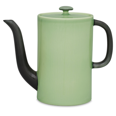 Für die einen gehört die Kaffeekanne mit der Formnummer „568“ zu den heimlichen Klassikern aus der Keramik-Manufaktur von Hedwig Bollhagen. Für die anderen ist die 670 Gramm schwere Kaffeekanne mit dem geraden, zylindrisch geformten Korpus die korpulente Schwester der schlanken Mokkakanne 558. Charakteristisch für beide Kannen ist die sehr lange, elegant geschwungene Tülle, der schnörkellose, leicht eckig geformte Henkel sowie der flache, runde Deckel mit dem Griff in Pilz-Optik. Mit einer Gesamthöhe von 18,5 Zentimetern ist die Kaffeekanne zwar nicht ganz so hoch wie die Mokkakanne. Dank des etwas größeren Durchmessers von elf Zentimetern bringt sie es aber auf ein Fassungsvermögen von immerhin 1,2 Litern.