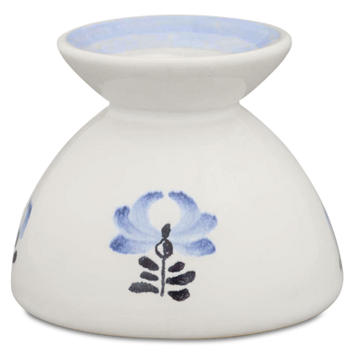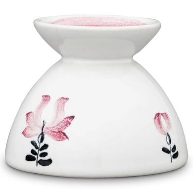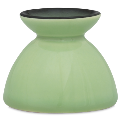 Der Leuchter von Hedwig Bollhagen mit der Formnummer „205“ erinnert auch irgendwie an einen umgedrehten Eierbecher. Charakteristisch sind der bauchig-kugelförmige, sich zum Hals verengende Korpus und der kegelförmige Kerzenhalter. Bei einem Durchmesser von sechs Zentimetern ist der fünf Zentimeter hohe Leuchter fast so hoch wie breit. Und mit einem Gewicht von 500 Gramm ist dieser Leuchter weder zu schwer noch zu leicht, aber dennoch stabil und standfest. So viel steht fest, dieser keramische Leuchter erhellt nicht nur die kulinarischen Köstlichkeiten beim Candle-Light-Dinner im romantischen Kerzenschein, sondern lässt auch die Herzen in trauter Zweisamkeit höher schlagen. Schön ist eben, was funktioniert.
