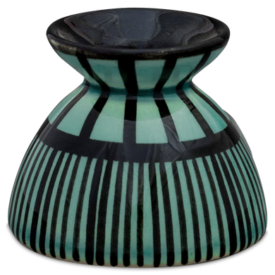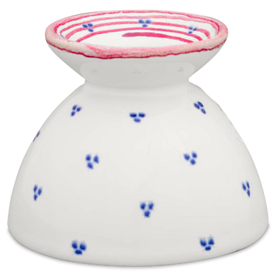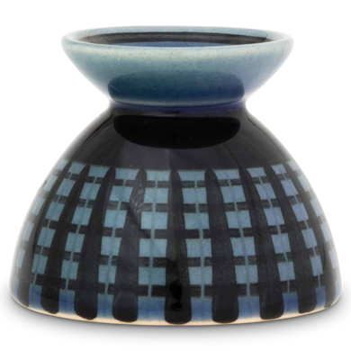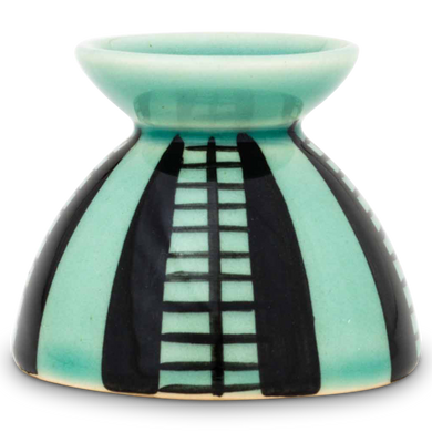 Der Leuchter von Hedwig Bollhagen mit der Formnummer „205“ erinnert auch irgendwie an einen umgedrehten Eierbecher. Charakteristisch sind der bauchig-kugelförmige, sich zum Hals verengende Korpus und der kegelförmige Kerzenhalter. Bei einem Durchmesser von sechs Zentimetern ist der fünf Zentimeter hohe Leuchter fast so hoch wie breit. Und mit einem Gewicht von 500 Gramm ist dieser Leuchter weder zu schwer noch zu leicht, aber dennoch stabil und standfest. So viel steht fest, dieser keramische Leuchter erhellt nicht nur die kulinarischen Köstlichkeiten beim Candle-Light-Dinner im romantischen Kerzenschein, sondern lässt auch die Herzen in trauter Zweisamkeit höher schlagen. Schön ist eben, was funktioniert.