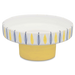 Fayence weiß gelbe Bänder und blaue Striche Glasur glänzend