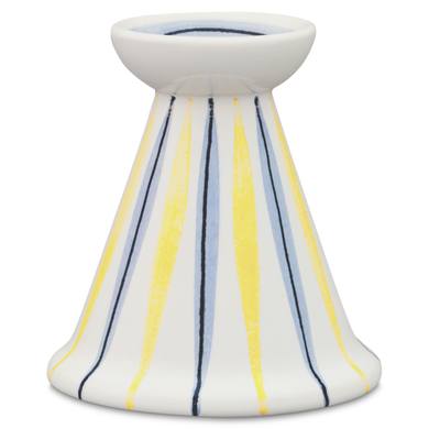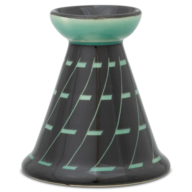 Der Leuchter von Hedwig Bollhagen mit der Formnummer „207“ tunkt jeden Raum in eine stimmungsvolle Aura. Charakteristisch sind der konische Korpus und der bauchig-kugelförmige Kerzenhalter. Bei einem Durchmesser von acht Zentimetern ist der neun Zentimeter hohe Leuchter fast so breit wie hoch. Und mit einem Gewicht von nur hundert Gramm gehört dieses Leichtgewicht eher zu den ganz kleinen, aber nicht minder feinen Leuchtern in der keramischen Kollektion von Hedwig Bollhagen. Nicht gerade schwer, wegen der Kegelform aber dennoch stabil, taucht dieser dekorative Leuchter auch den dunkelsten Raum in ein stimmungsvolles Licht. So viel steht fest, dieser zeitlos schöne Leuchter bereichert jedes Interieur.