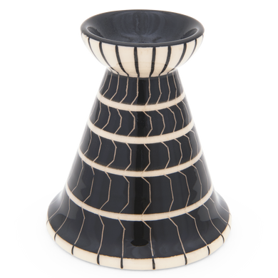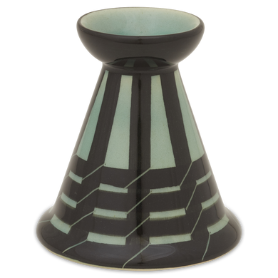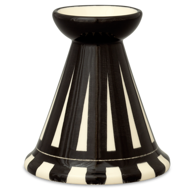 Der Leuchter von Hedwig Bollhagen mit der Formnummer „207“ tunkt jeden Raum in eine stimmungsvolle Aura. Charakteristisch sind der konische Korpus und der bauchig-kugelförmige Kerzenhalter. Bei einem Durchmesser von acht Zentimetern ist der neun Zentimeter hohe Leuchter fast so breit wie hoch. Und mit einem Gewicht von nur hundert Gramm gehört dieses Leichtgewicht eher zu den ganz kleinen, aber nicht minder feinen Leuchtern in der keramischen Kollektion von Hedwig Bollhagen. Nicht gerade schwer, wegen der Kegelform aber dennoch stabil, taucht dieser dekorative Leuchter auch den dunkelsten Raum in ein stimmungsvolles Licht. So viel steht fest, dieser zeitlos schöne Leuchter bereichert jedes Interieur.