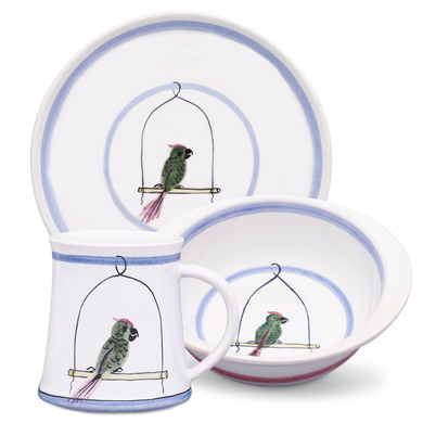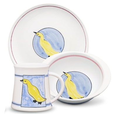 Das 3-teilige Kindergeschirr-Set von Hedwig Bollhagen bietet alles, was kleine Genießer am Tisch brauchen und macht jede Mahlzeit zum Vergnügen. Es besteht aus einem kindfreundlichen Teller (Form 502), einer praktischen Schale mit kleinen Griffen (Form 591) und einer liebevoll gestalteten Tasse mit kindgerechtem Henkel (Form 565). Jedes Stück ist handgefertigt in unserer Manufaktur in Deutschland und mit lustigen und niedlichen Motiven verziert, die Kinder begeistern und ihnen ein Lächeln ins Gesicht zaubern. Das Essen macht aus diesen fröhlichen Keramiken, die ideal für die kleinen Hände sind, noch mehr Spaß! Langlebig, spülmaschinengeeignet und ideal für den täglichen Gebrauch – ein freudiges Set, von dem Kinder gerne essen! Ergänzen Sie das Set mit einem passenden Eierbecher, damit das Frühstücksei noch mehr Freude bereitet, oder einer Butterdose, die perfekt für den morgendlichen Brotzeitspaß ist. Auch eine kleine Kanne für Milch oder Kakao macht das Kinderfrühstück komplett.